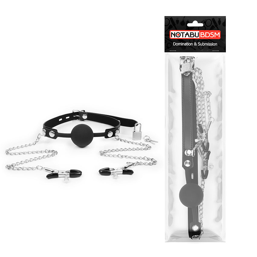 Характеристики Кляп з зажимами на соски БДСМ Чорний Notabu
