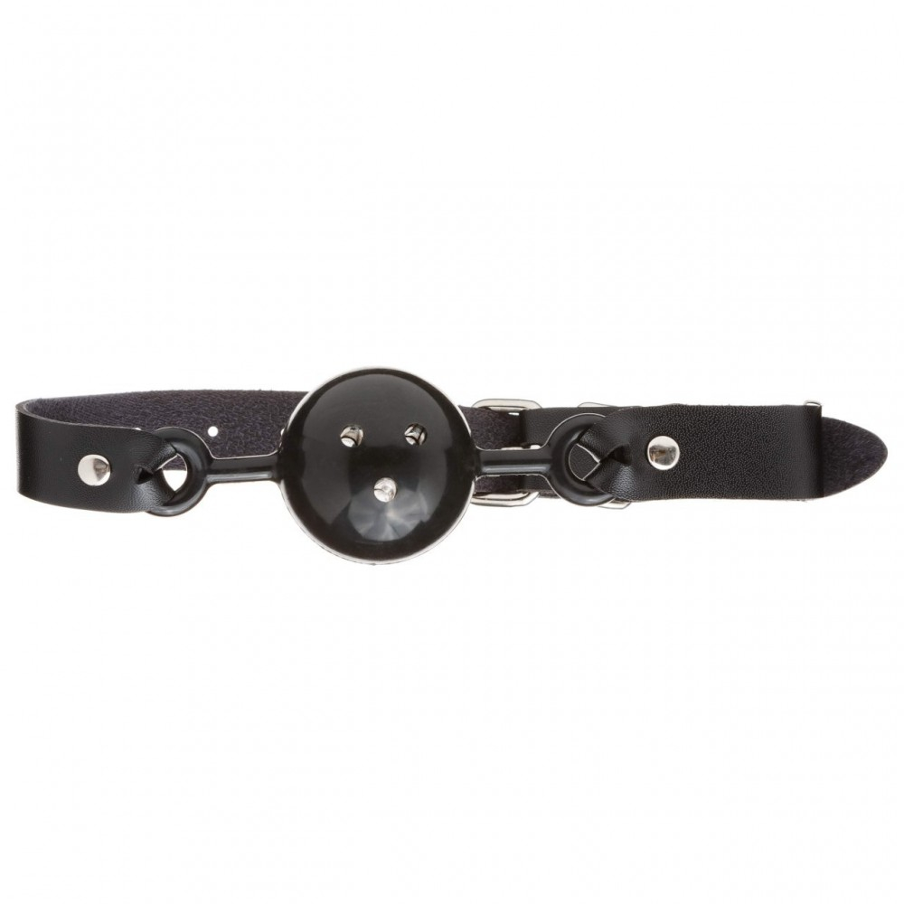Стильна чорна кулька з латексу легко увійде до будь-якого ротика, і буде надійно зафіксована чорним шкіряним ремінцем.
