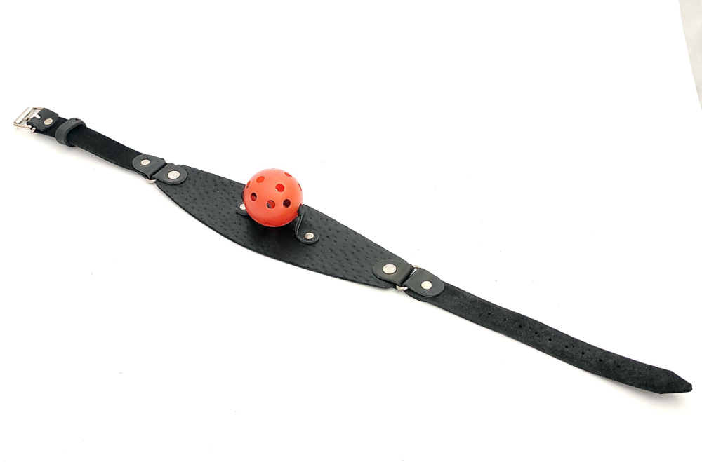 Кляп кулька в рот БДСМ із натуральної шкіри червоно чорного кольору Scappa