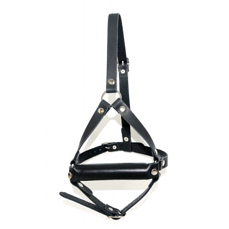 Кляп Узда паличка в рот БДСМ з ремінцями з натуральної шкіри чорного кольору Scappa