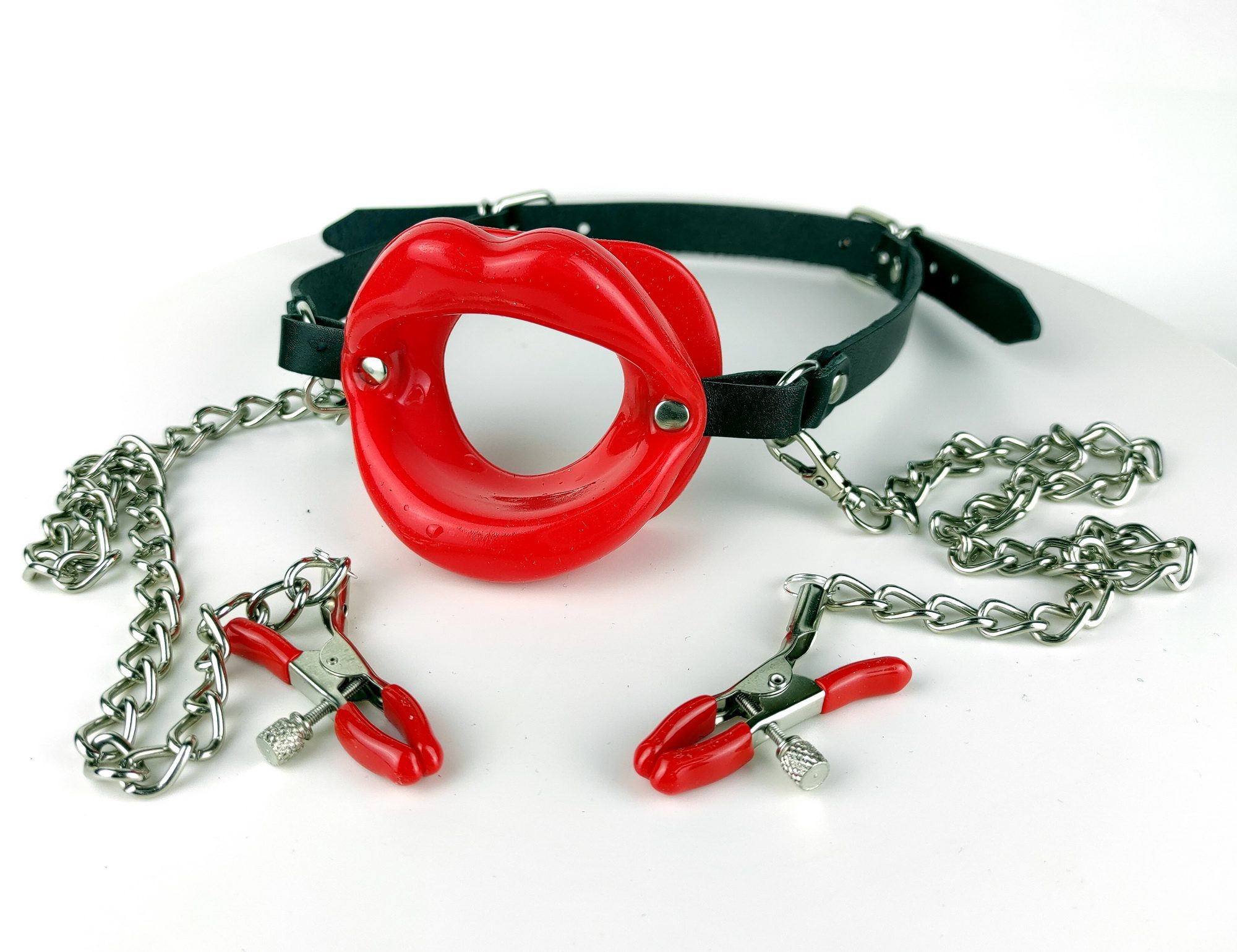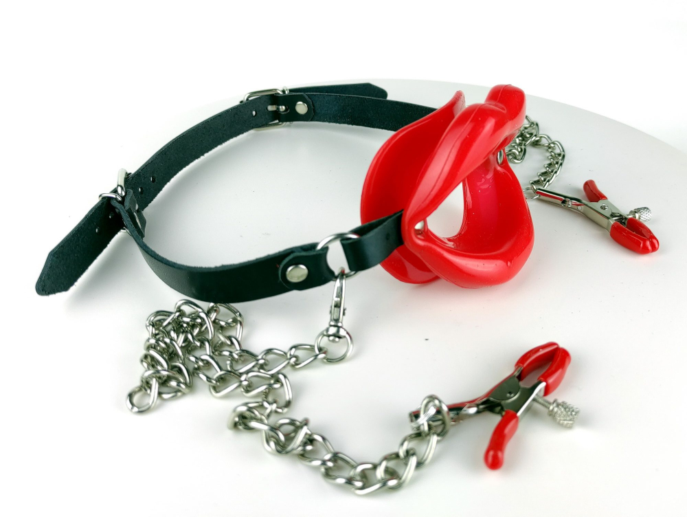 Набір Кляп “Губи з затискачами”Колір губ : чорний, червонийМатеріал: натуральна шкіраРозмір -регулюється