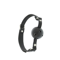 Кулька кляпа виконана з гіпоалергенного пластику, а ремінець із міцного та якісного шкірозамінника. Обхват кляпа регулюється за допомогою системи фіксації на ремінці.