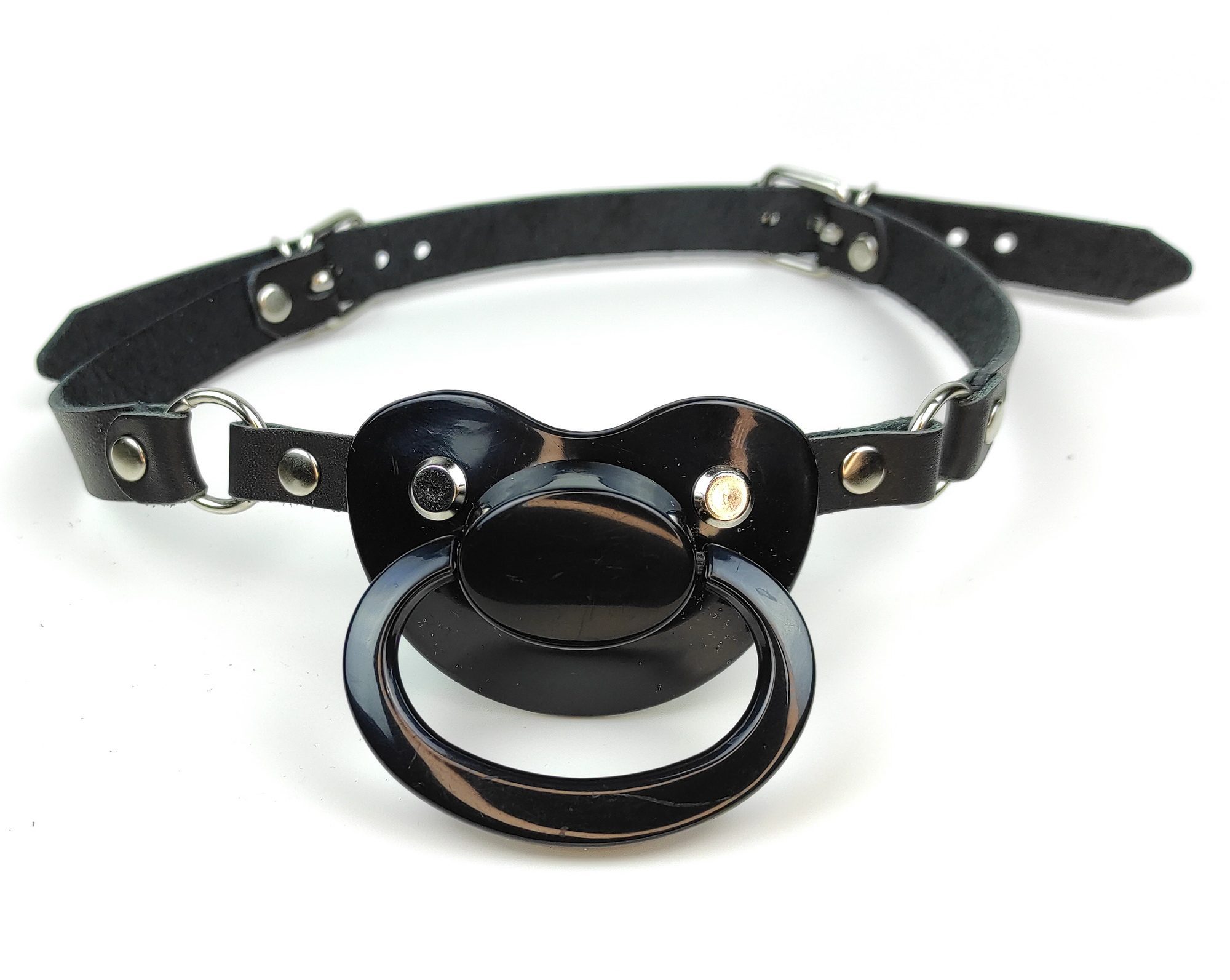 Характеристики Кляп у рот соска БДСМ із натуральної шкіри чорного кольору Scappa