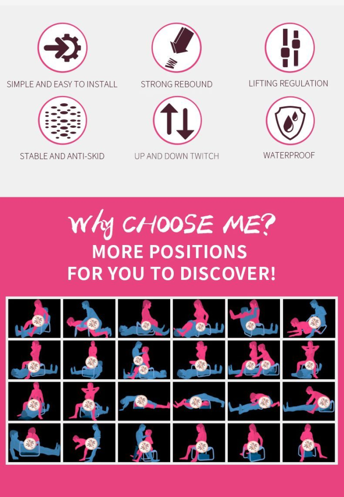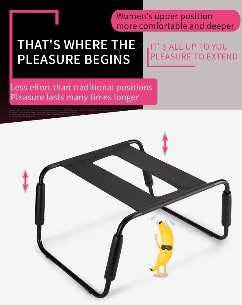 З цим секс-стулом ви зможете насолоджуватися новими еротичними позами будь-де: на кухні, у вітальні, а чому б не пограти в ексгібіціоніст, наважившись вийти на балкон або терасу! Поставте табурет у кімнаті, що вам сподобалася, і почніть грати в дуже еротичні ігри.