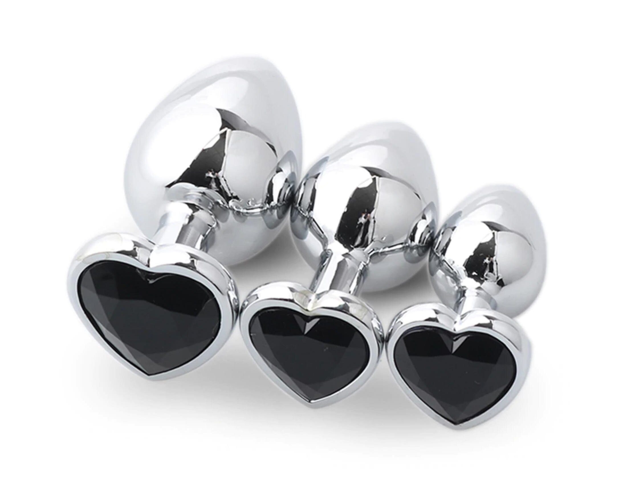 Набір металевих анальних пробок з кристалом у формі серця.
