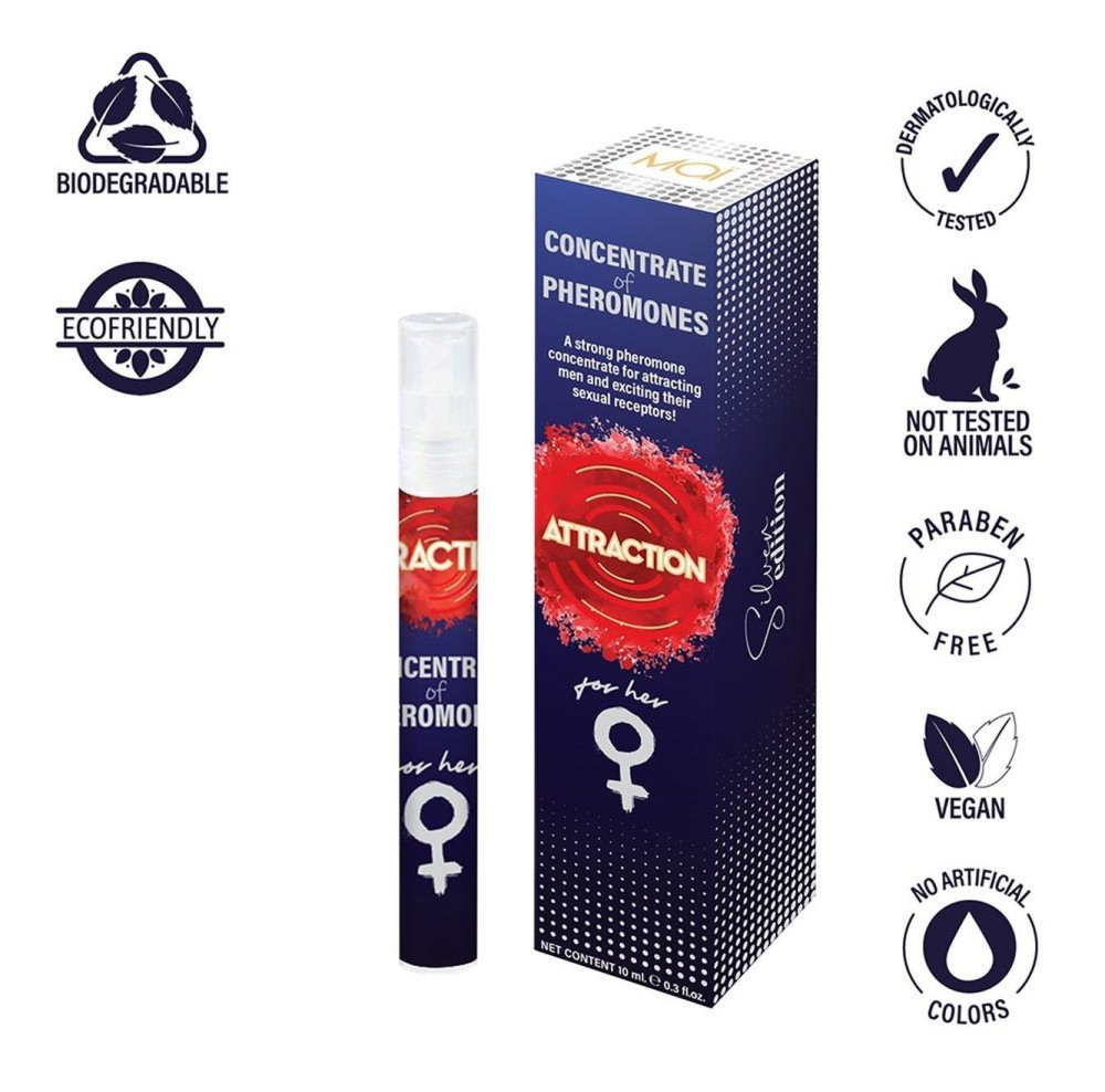 Підвищує жіночу силу фізичного потягу: MAI Attraction Concentrated Pheromones For Her створений на основі квітки жасмину, аромат якого викликає підвищення рівня тестостерону у чоловіків, що є природним способом їхнього залучення. Він ґрунтується на природному тяжінні феромонів, завдяки яким жінки можуть викликати інтерес чоловіків. Концентровані феромони для жінок MAI Attraction – зроблять її привабливою та бажаною. Наші нові феромони покладаються на природне тяжіння феромонів збудження чоловічого інтересу. Аромат – жасмин, аромат якого викликає підвищення рівня тестостерону у чоловіків. Тестостерон зростає на 82%.