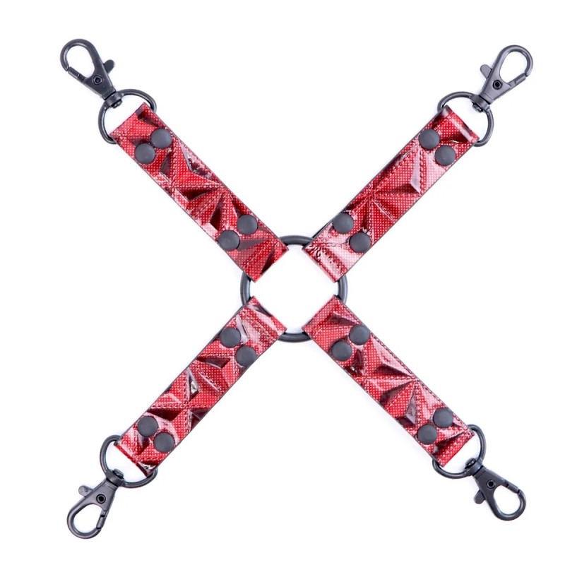 Конектор для фіксації з чотирма карабінами та кільцем БДСМ червоного кольору