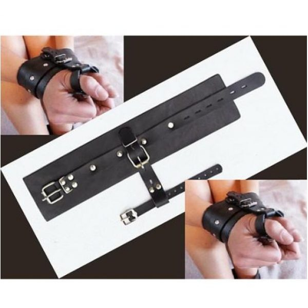 Шкіряні Наручники чорні з обмеженням на пальцях