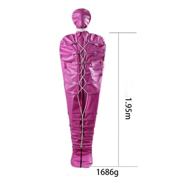 Цей яскравий бандаж" Муміфікація " для тіла з яким ви зможете повністю контролювати свого партнера. Сексуальний і строгий в той же час, виготовлений з високоякісного шкірозамінника. За допомогою блискавки по всій довжині бандажа і завязочек ви добре зможете знерухомити підлеглого.Також в комплекті капюшон що може як закрити повністю голову так і відкрити.Довжина бандажа 194 см.