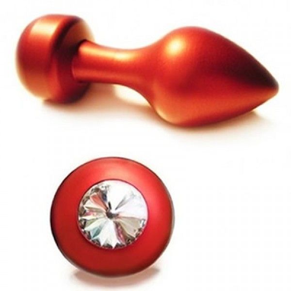Червона алюмінієва анальна пробка з кристалом Сваровських. Довжина: 85mm Діаметр: 35mm загальний найбільший діаметр: 12mm Вага: 125g
