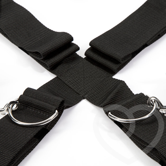 Відкрийте для себе нові варіанти БДСМ бондажа з цієї хрестоподібної ремінною системою, яка дозволяє зафіксувати як зап'ястя так і щиколотки в 2-х різних положеннях – зведеному і розведеному. Розкладіть чорні ремені у формі літери Х поверх матраца так, щоб манжети для щиколоток і зап'ясть були в кутах ліжка. Потім простягніть тонкі сірі ремені під матрацом в ногах і в головах так, щоб D-образні кільця були зверху. Протягніть сірі ремені в пряжки і затягніть, щоб закріпити систему.