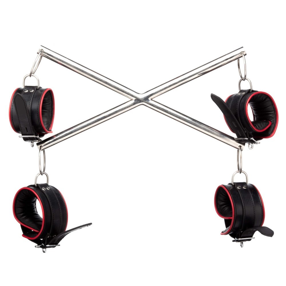 Хрестовина металева DS Fetish з наручниками та шкіряними поножами (Голландія)