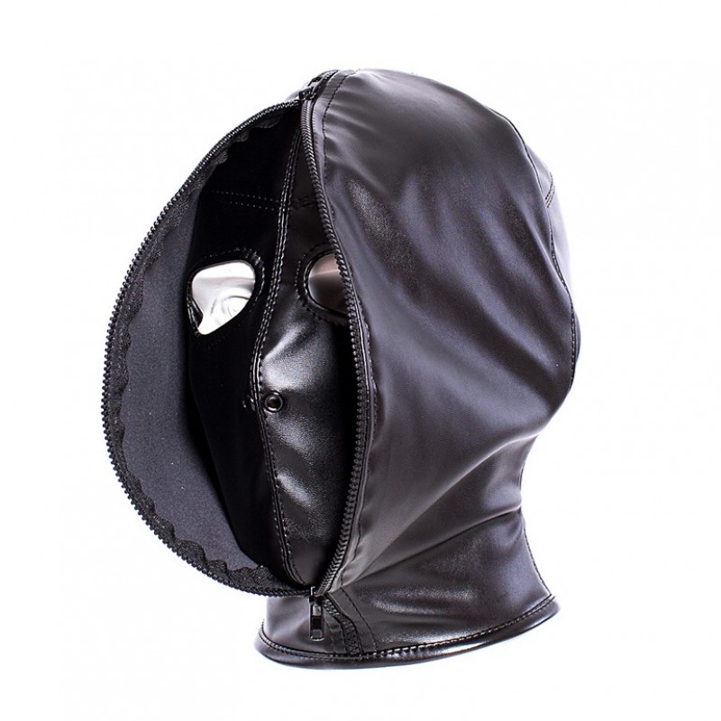 Характеристики Маска капюшон з вирізами під очі БДСМ на блискавці та шнурівці чорного кольору Uabdsm