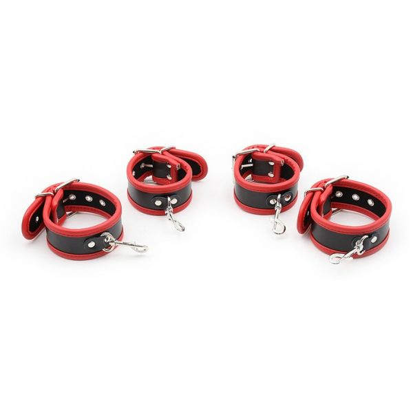 Характеристики Система фіксації тіла на ланцюгах БДСМ червоно чорного кольору Bdsm4u Linked Cuffs