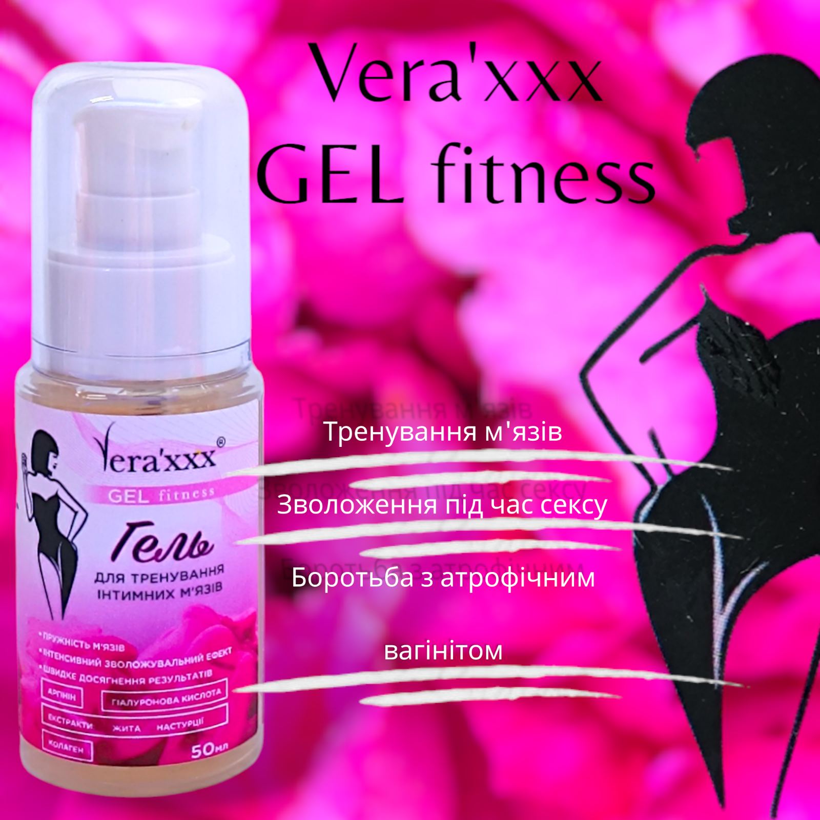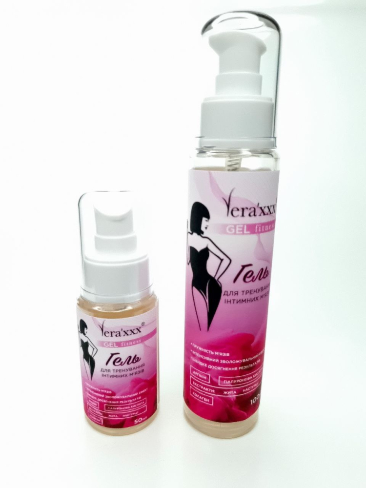 ГЕЛЬ ДЛЯ ТРЕНУВАННЯ ІНТИМНИХ М'ЯЗІВ • ПРУГІСТЬ М'ЯЗІВ • ІНТЕНСИВНИЙ ЗВОЛОЖУЮЧИЙ ЕФЕКТ • ШВИДКЕ ДОСЯГНЕННЯ РЕЗУЛЬТАТІВ Vera’xxx Fitness Gel – універсальний засіб, що надає вологість у органах малого таза. • Екстракт жита сприяє відновленню та підвищує пружність м'язів. • Екстракт настурції покращує живлення тканин, сприяючи транспорту кисню до клітин. • Аргінін підвищує чутливість зовнішніх статевих органів та зон навколо них. • Гіалуронова кислота усуває сухість піхви та інтенсивно відновлює вологу зовнішніх статевих органів. • Колаген сприяє регенерації тканин та покращує еластичність. • Молочна кислота підтримує здорову мікрофлору та зволожує слизову. Гель компенсує та підтримує природну жіночу лубрикацію завдяки поєднанню гіалуронової кислоти, D-пантенолу та додаткових зволожуючих компонентів, які знімають запалення та надають заспокійливу дію під час менопаузи та гормонального дисбалансу у будь-якому віці. Використання гелю під час вправ допоможе досягти результатів швидше, полегшить тренування та посилить ефект. СПОСІБ ЗАСТОСУВАННЯ: Для тренувань: Перед використанням вагінальних тренажерів (кульок, конусів) промийте їх водою з милом та продезінфікуйте спеціальним спреєм Vera'xxx CLEAN Fitness. Нанесіть гель на інтимні зони або тренажери та починайте зміцнювати м'язи тазового дна за методикою тренувань Vera'xxx Fitness. При проблемах із сухістю: Використовуйте гель вранці та ввечері після гігієнічних процедур. Як лубрикант: Нанесіть безпосередньо в інтимну близькість для комфорту та зволоження. Об'єм -50 мл