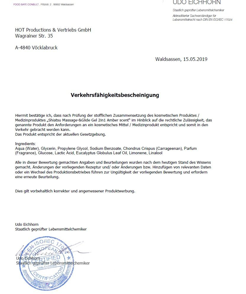 Лубрикант та масажне масло 2 в 1 HOT SHIATSU Massage-& Glide gel 2in1 Amber scent, 200 мл
