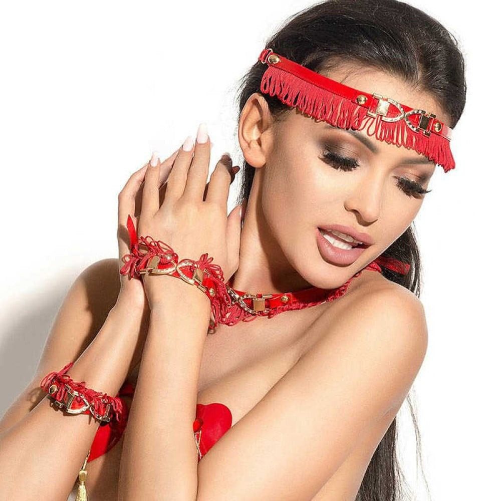 Лінійка пікантних аксесуарів допоможе вам створити незабутній образ східної красуні. Поєднання прикрашеної стразами золотистої фурнітури, разом із бахромою створюють образ таємничого Сходу, спокусливих наложниць та розкішних гаремів.
