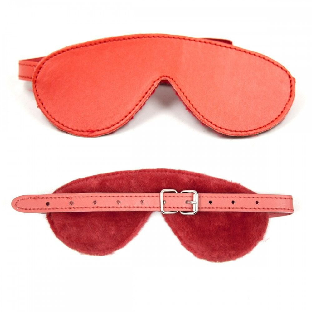 Маска на очі БДСМ із плюшевою підкладкою штучна шкіра червона DS Fetish