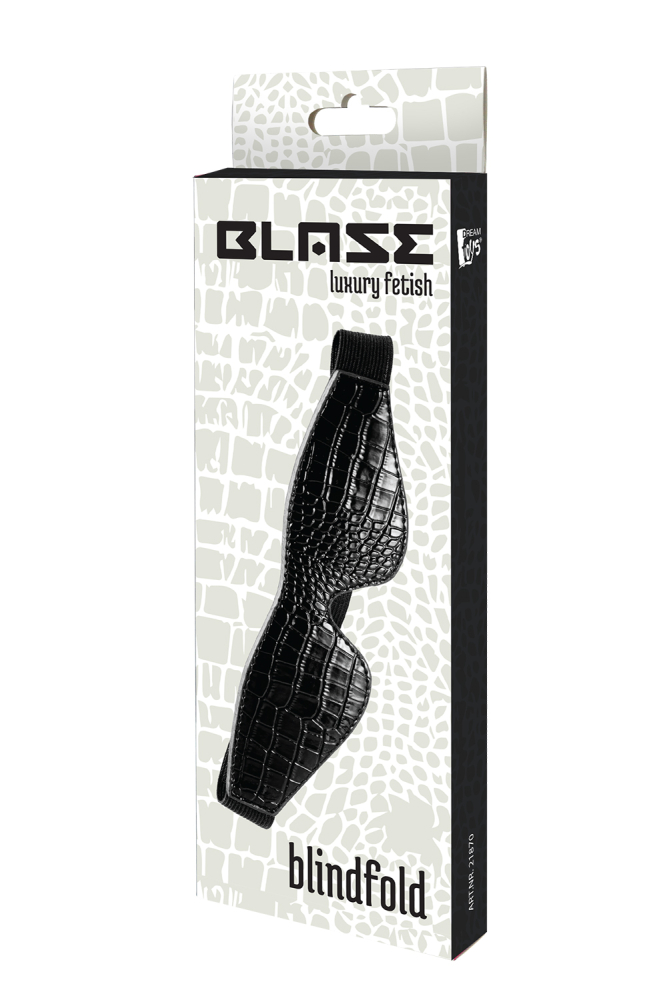 Ця маска або пов'язка на очі виконана з гладкого, блискучого матеріалу з дизайном шкіри крокодила.