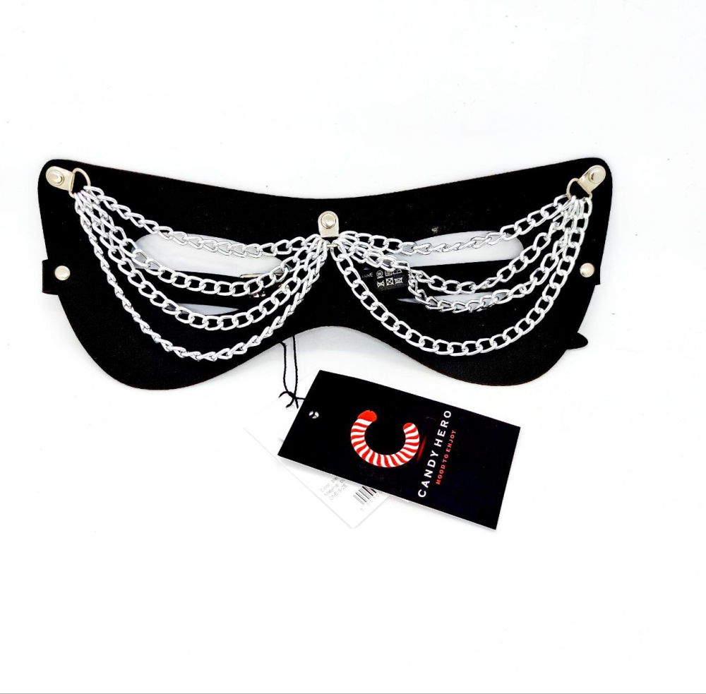 Маска на очі з ланцюгами БДСМ із штучної шкіри чорна Candy Hero модель MCN1
