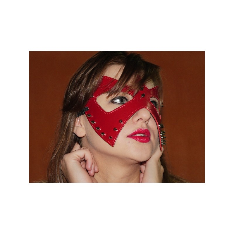 Характеристики Маска на очі з металевими шипами БДСМ із натуральної шкіри червоного кольору Scappa