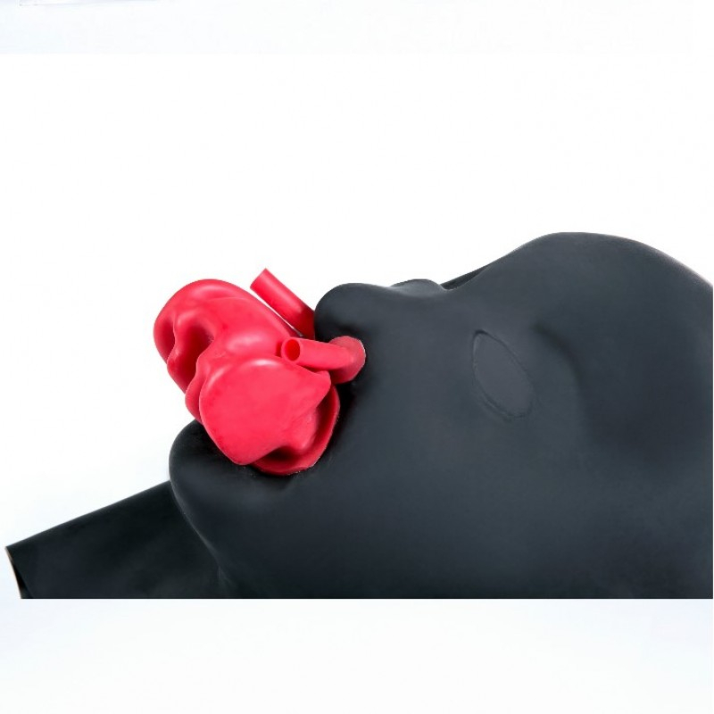 Характеристики Маска на обличчя на блискавці чорного кольору з кляпом у рот та відсмоктувачами для носа рожевого кольору Uabdsm