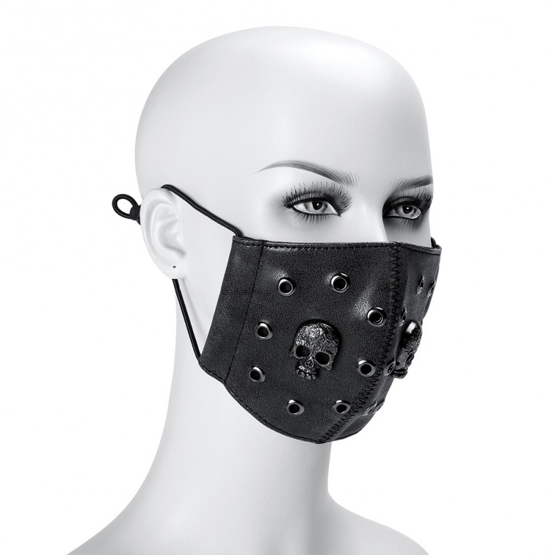 Маска унісекс у стилі стимпанк з черепами та заклепками Punk Rock Gothic чорного кольору