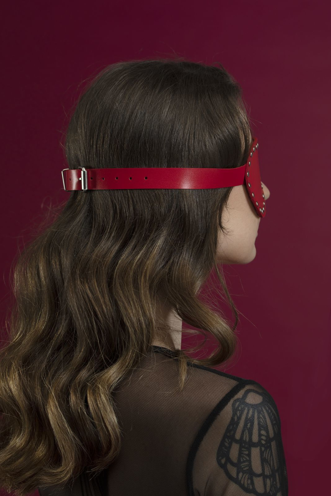 Шикарна маска з заклепками стане вашим улюбленим аксесуаром для ігор із зав'язуванням очей! Анатомічна форма повторює форму обличчя, забезпечуючи щільне прилягання і не пропускаючи світло. Виготовлена з високоякісної шкіри рослинного дублення і доповнена стильною фурнітурою сріблястого кольору.