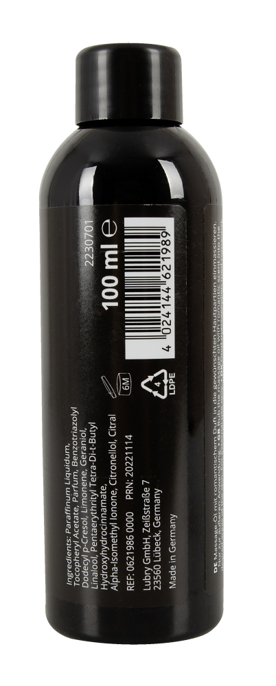 Насичене масажне масло преміум-класу з унікальним романтичним ароматом. З олією жожоба. Після використання шкіра розслабляється, ніжний запах заспокоює нервову систему, діючи у своїй як м'який тонік свідомості. Чутливість всіх ерогенних зон посилюється, і ви можете довго насолоджуватися тілами один одного, досліджуючи їх, шукаючи нові солодкі місця. Аромат жожоба. Розчинний у воді, легко змивається і не залишає плям. Склад: Paraffinum liquidum, Trilaureth-4-Phosphate, Isopropyl Palmitate, Polyglyceryl-2 Sesquisostearate, Simmondisa Chinensis (Jojoba) Seed Oil, Cinnamyl Alcohol, Cital, Benzyl Salicylate, Coumarin, Butylphenylmethyl ha- Isomethyl Ionone, Parfum. Об'єм: 50 мл. Термін придатності 6 місяців із моменту відкриття.