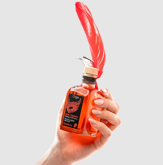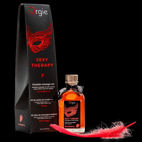 Масажний набір: їстівне масло для масажу + перо зі смаком полуниці Orgie