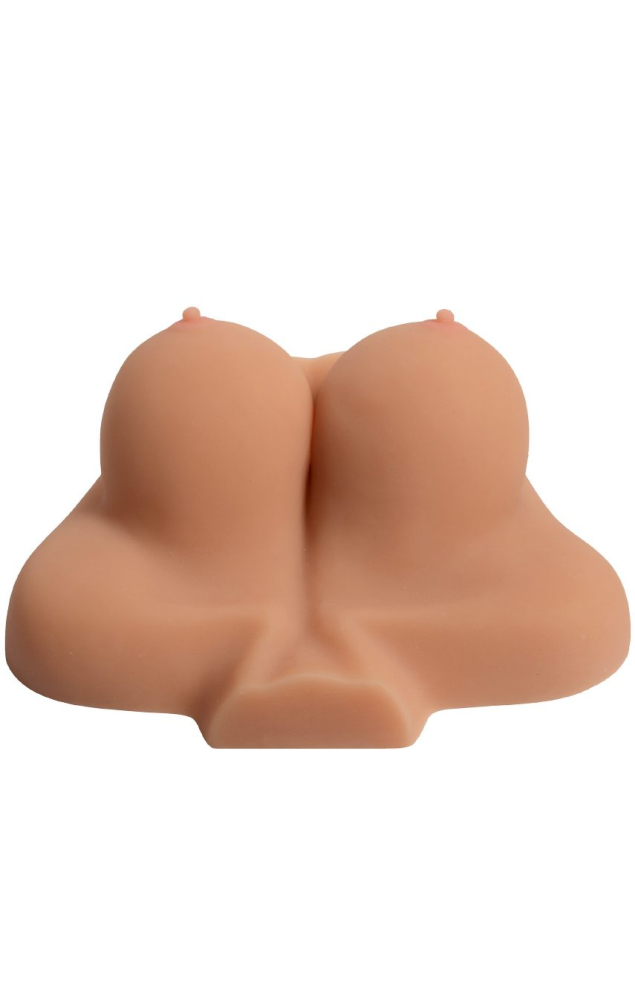 Розкішний мастурбатор у формі пишних жіночих грудей подарує незабутні любовні втіхи. Він володіє спокусливим дизайном з сосочками, що стирчать від збудження, і привабливою «кицькою», прикритою акуратними статевими губками. Наскрізний отвір, що полегшує догляд за виробом. З одного боку ви зможете насолодитися чуттєвою вагиною, а з іншого – тугим входом в анус. Внутрішня структура не менш приголомшлива. Рельєфна поверхня усипана безліччю шишечок для приголомшливої стимуляції. Девайс створений з інноваційного матеріалу, який майстерно імітує живе тіло. Він ніжний та приємний на дотик, швидко приймає температуру тіла. Використання лубриканта на водній основі зробить ваші сексуальні втіхи максимально комфортними та реалістичними. Модель оснащена функцією вібрації та працює від батарейок. Після використання очистіть теплою водою з антибактеріальним милом.