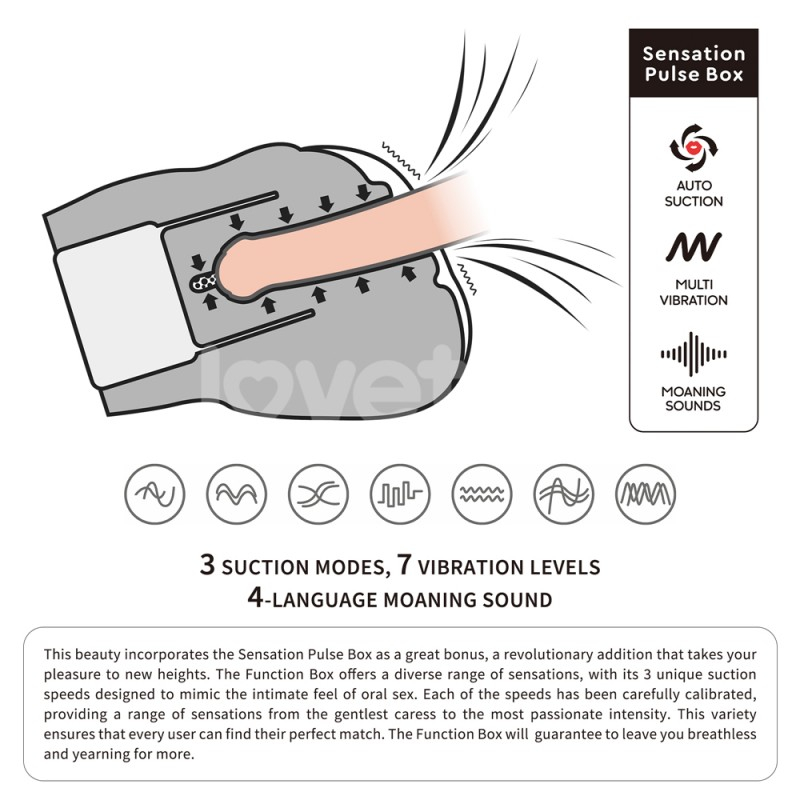 Представляємо наш вишуканий інструмент для задоволення – мастурбатор Streetgirls із революційним блоком Sensation Pulse Box. Ця краса створена для того, щоб підняти ваші інтимні переживання на нову висоту, забезпечуючи неперевершене поєднання задоволення та чудової функціональності. Цей вишуканий пристрій для задоволення, що відрізняється приголомшливою розширеною піхвою і реалістичним дизайном, супроводжується сексуальними сексуальними стрінгами Boudoir, призначеними для стимуляції ваших почуттів з моменту насолоди. Його елегантний корпус розміром 8 x 9, 2 x 5 (20, 5 x 23, 4 x 12, 8 см) і вагою 6, 31 фунта (2, 86 кг) розрахований на роки інтенсивного задоволення. Як чудовий бонус, революційного доповнення , ця краса включає блок Sensation Pulse Box. це підніме ваше задоволення на нову висоту. Функціональний блок пропонує широкий спектр відчуттів завдяки трьом унікальним швидкостям всмоктування, що імітують інтимне відчуття орального сексу. Кожна зі швидкостей була ретельно відкалібрована, забезпечуючи діапазон відчуттів від найніжнішої ласки до найстрашнішої інтенсивності. Така різноманітність гарантує, що кожен користувач зможе знайти ідеальну пару. Функціональний блок гарантовано змусить вас приховати дихання і прагнути більшого. Завдяки інтеграції реалістичних звуків стогонів і 7 частот вібрації цей Sensation Pulse Box йде ще далі, забезпечуючи воістину запаморочливі відчуття, викликаючи непереборне задоволення при кожному зіткненні зі шкірою. Очистити цей розкішний пристрій для задоволення дуже просто; Перед чищенням обов'язково зніміть сенсорну коробку, потім просто промийте канал проточною водою і витріть насухо. Для отримання максимального задоволення ми рекомендуємо використовувати достатню кількість мастила, щоб забезпечити легкий вхід при кожному використанні. Нелипкий матеріал без запаху із природним кольором шкіри. В комплект входять спокусливі стрінги для будуару та USB-кабель для заряджання. На абсолютно новому рівні з революційним Sensation Pulse Box. 3 режими всмоктування, 7 рівнів вібрації, звук, що стогне, 4 мовами. Ідеально підходить як для денного, так і для нічного відпочинку. Розмір: 8 х 9, 2 х 5 (20, 5х23, 4х12, 8см). Вага нетто мастурбатора: 6, 31 фунта (2, 86 кг). Матеріал: АБС-пластик, безпечний для тіла ТПЕ. Як використовувати Sensation Pulse Box? Перед використанням зарядіть. Під час заряджання індикатор блимає, коли акумулятор заряджений. Зарядка займає 1,5 години. Натисніть кнопку POWER/SUCTION протягом 2 секунд, щоб увімкнути/вимкнути. Натисніть кілька разів, щоб переключитися між 3 режимами всмоктування. Натисніть кнопку ВІБРАЦІЯ протягом 2 секунд, щоб увімкнути режим вібрації. Натискайте кілька разів, щоб переключатися між 7 рівнями вібрації. Щоб увімкнути голосовий режим, утримуйте кнопку ЗВУК протягом 2 секунд. Натискайте кілька разів, щоб переключитися між китайською, японською, англійською та корейською мовами. Сумісність із навушниками для непомітного та комфортного використання. Заряджання через USB-кабель: заряджання 60–90 хвилин під час використання протягом 60–90 хвилин. Перед кожним чищенням обов'язково обережно знімайте сенсорну коробку. Вагіни та мастурбатори - це зручна та практична сексуальна іграшка для кожного чоловіка, особливо тоді, коли він не має можливості задовольнити свої потреби з жінкою. У сучасному світі цей вид інтимного товару дуже популярни