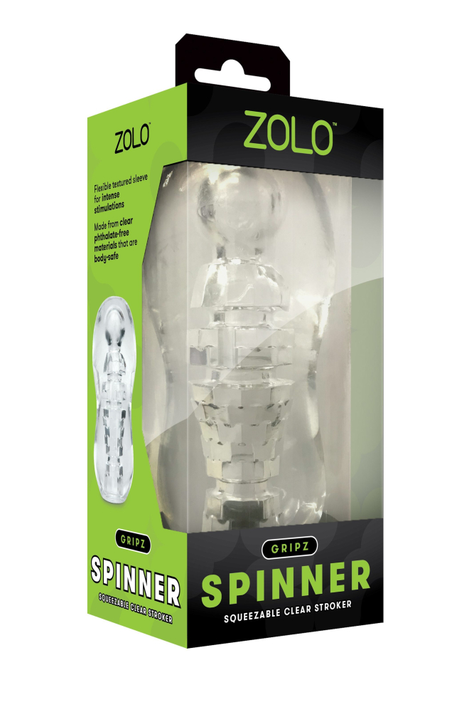 Колекція ZOLO Gripz представляє три нові стисливі прозорі гребінки, де ви можете спостерігати за дією, коли ви його робите! Spinner - це гнучкий текстурований рукав, який забезпечує інтенсивну стимуляцію завдяки своїй унікальній внутрішній формі у вигляді "диско-кулі" і ідеально лягає в руку завдяки ергономічному дизайну. Виготовлений із прозорих матеріалів, що не містять фталатів, які безпечні для тіла.