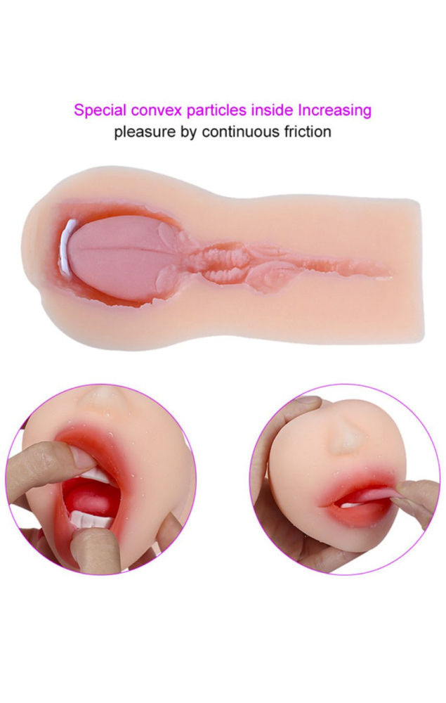 Мрієте про реалістичну іграшку, яка дозволить насолоджуватися чуттєвим мінетом у будь-який час. Ця крихта завжди готова догодити вашим бажанням і довести до феєричного екстазу. Чарівний рот виглядає неймовірно натурально. Еластичні губки приховують білі зуби, які створені, як і весь мастурбатор, з термопластичного еластомеру. Девайс створить повну ілюзію оральних ласок і дозволить поринути у світ інтимного блаженства. Додайте трохи лубриканта для легкого ковзання та вирушайте назустріч потужним оргазмам. Іграшка абсолютно безпечна для здоров'я, не містить фталатів та інших шкідливих домішок. Вона має природний тілесний відтінок і приємну текстуру. Для посилення чутливості під час близькості м'який рукав можна стискати у долоні. Після використання аксесуар слід промити, просушити та обробити спеціальним засобом для догляду за секс-іграшками.