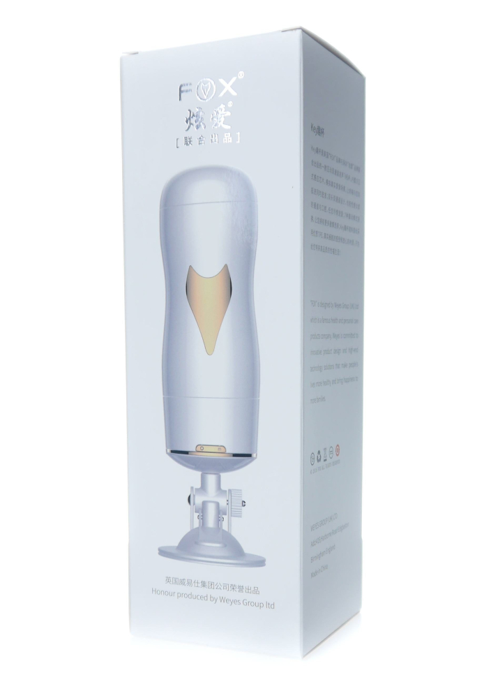 Автоматичний мастурбатор у колбі та на присосці двосторонній Вагіна та Ротик з вібрацією білого кольору Foxshow White