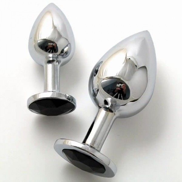 Характеристики Металева анальна пробка з чорним камінчиком розмір L