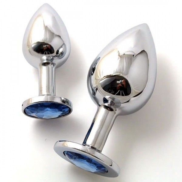Металева анальна пробка з блакитним каменем розмір L