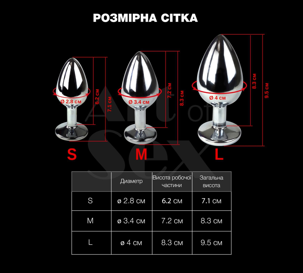 Характеристики Металева срібляста анальна пробка з диявольським хвостом чорного кольору Art of Sex Succubus розмір S