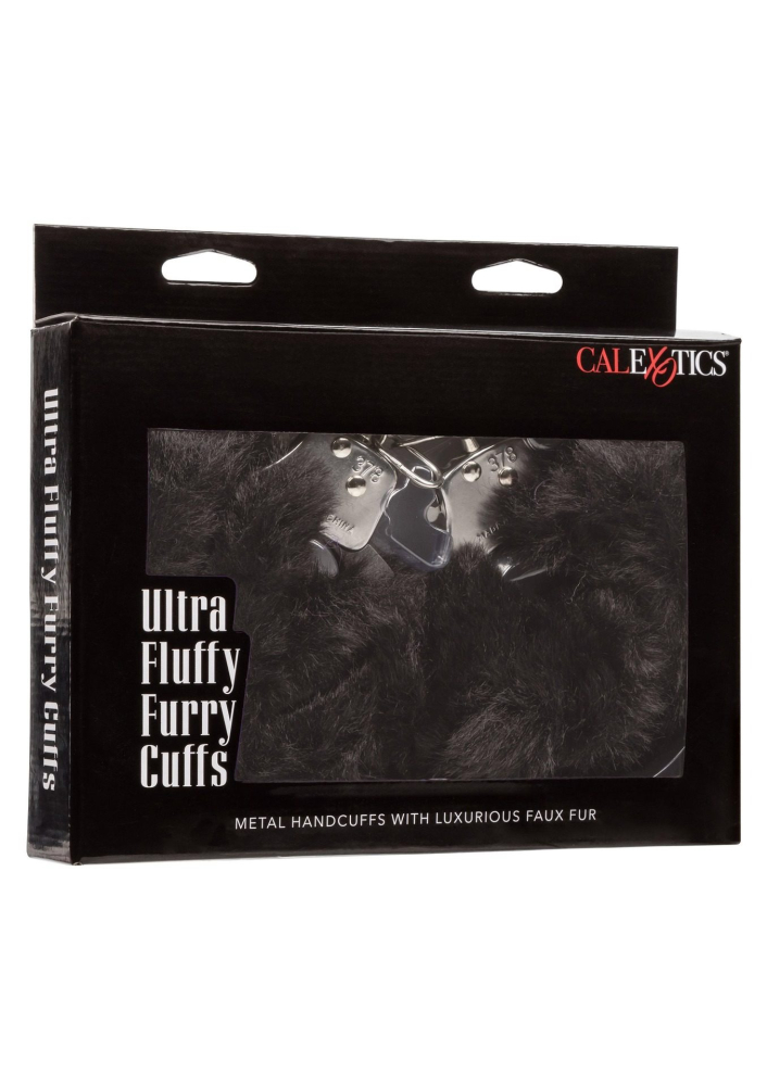 Наручники з хутром, металеві California Exotic, чорні