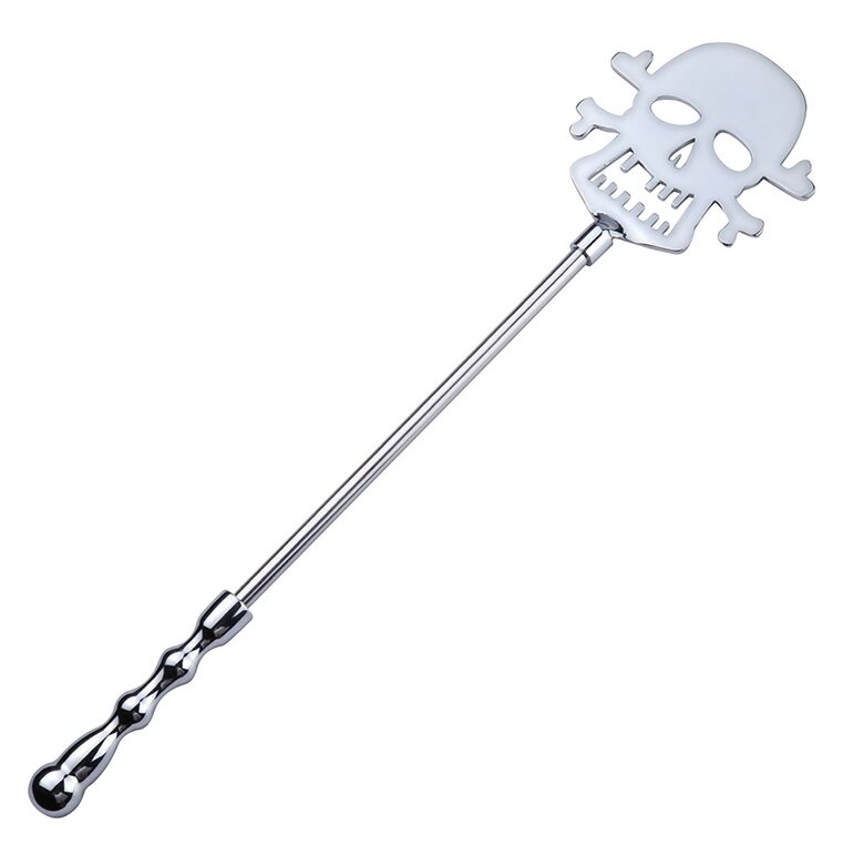 Чудовий БДСМ-аксесуар з шльопалкою у вигляді черепа, для любителів нестандартних еротичних розваг. Незвичайна форма робочої поверхні виробу припаде до смаку любителям оригінальних секс-іграшок. Зручна ручка дозволить максимально ефективно використовувати стек. Інтимний аксесуар ідеально підходить для» розігріву " перед інтимною близькістю, а також в якості елемента в рольовій грі.