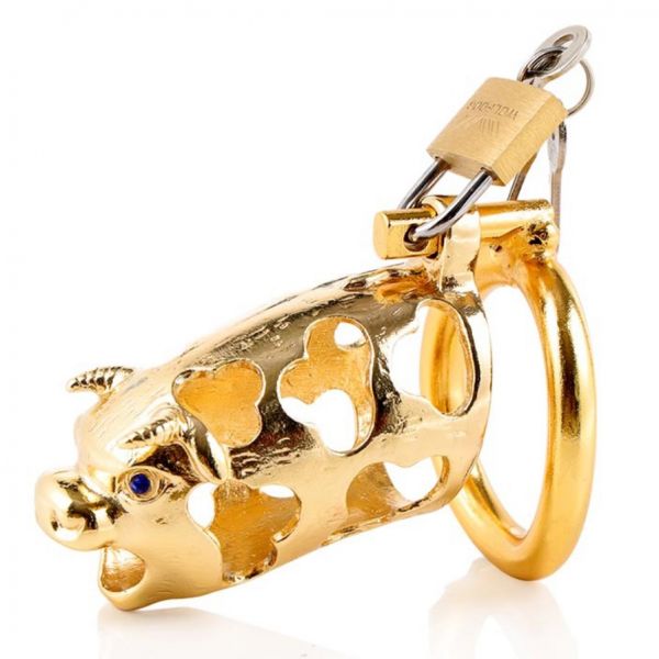 Металевий пристрій цнотливості для чоловіків із золотою головою бика
