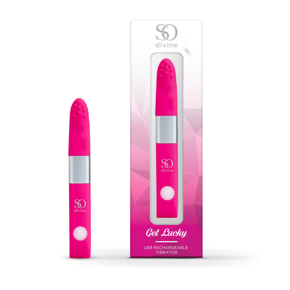Створений для подорожей, міні USB вібратор So Divine Get Lucky відрізняється компактним і стриманим дизайном, його довжина складає всього 12 см.