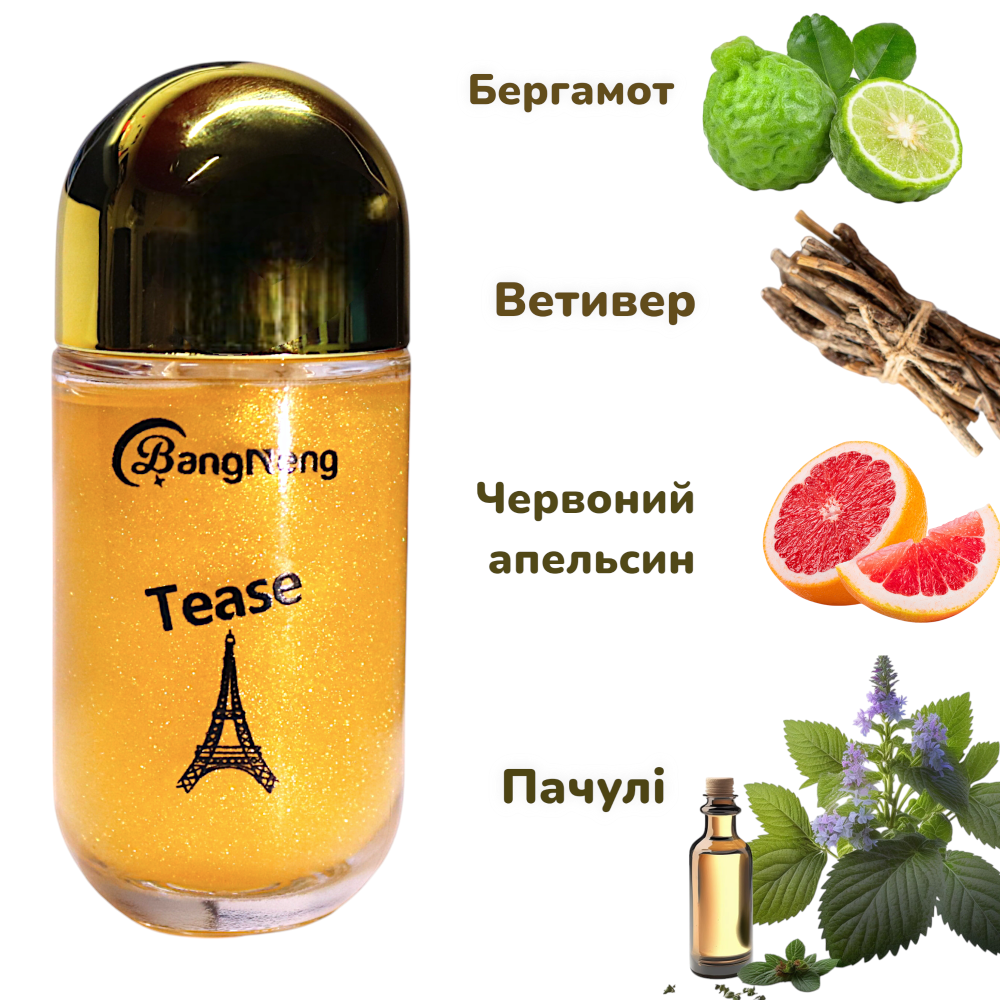 Цей аромат пробуджує еротичні фантазії у протилежної статі, неймовірно стильний і свіжий, манливий і шлейфовий одночасно. Цей парфум по-справжньому дражнить і притягує. Кожну хвилину аромат розкривається по-новому: солодкий червоний апельсин, бергамот, рожевий перець, ветивер і пачулі... І це ще не все, що можна відчути, адже наносячи його на свою шкіру, ви отримуєте завершальну феромонну ноту із золотими частинками. Трохи солодкий, але при цьому свіжий чоловічий аромат наповнює впевненістю та силою для нових звершень! Флакон: скло Упаковка: коробка Об'єм: 25 мл