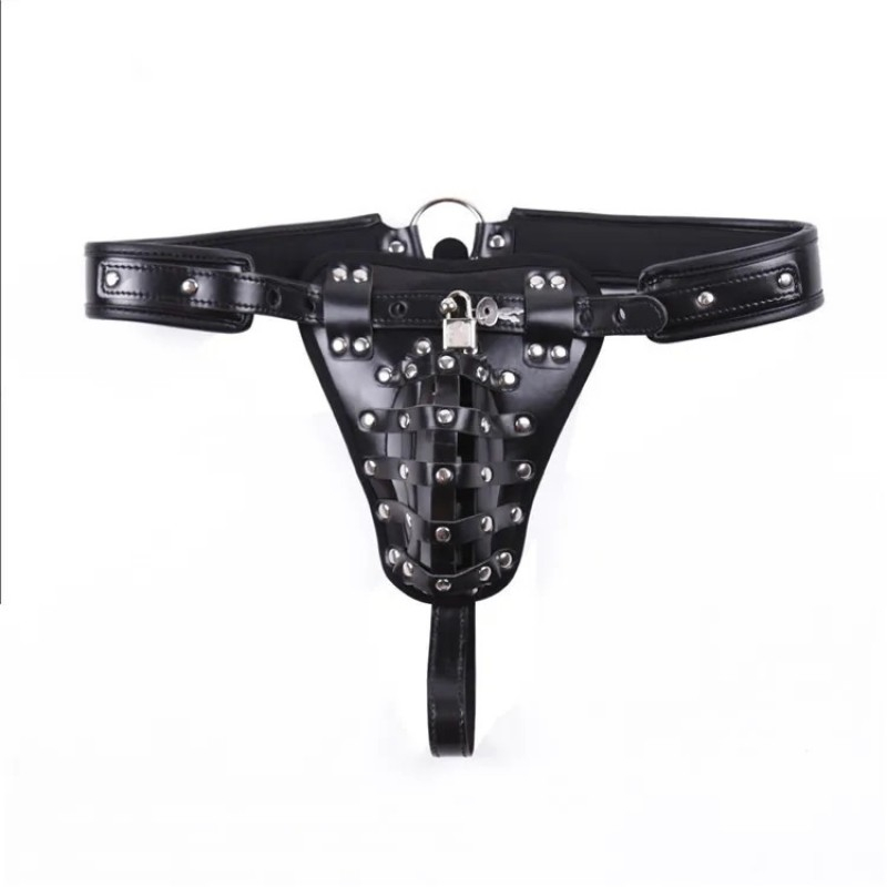 Характеристики Чоловічі труси 2 в 1 пояс вірності на член із замком для БДСМ чорного кольору