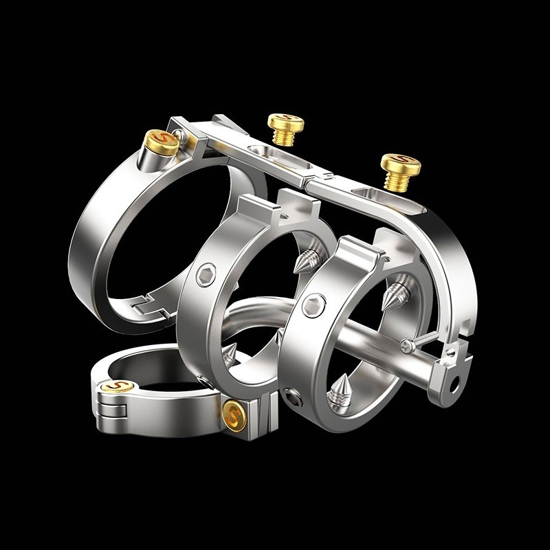 Штучний Steel Male Chastity Device Punk Style Cock Cage Hinged Penis Ring Screws Lock ADevice є складом стійкої стелі і її surface is polished. ) може бути вибраний: 40мм, 45мм, 50мм. Пояс вірності для чоловіків значно відрізняється від жіночого. Хоча й є такі ж види білизни як і у жінок. Зазвичай пояс вірності для чоловіків є клітиною для пеніса. Виготовляється із пластмаси або нержавіючої медичної сталі. Пояс вірності чоловікам може використовуватися як надійний фіксатор чоловічого пеніса для психологічного заспокоєння жінок. Адже для жінок головне, щоб мужик не ходив набік. Також може бути використаний як атрибут для сексуальних ігор. Експериментувати можна по-різному, головне включити уяву. Надійно закріпивши пояс вірності можна зафіксувати за допомогою замочка, а ключик сховати в надійному місці, і змусити чоловіка заслужити його. Не вимагає особливого догляду за конструкцією, достатньо промити під проточною водою з милом. У зв'язку з тим, що не відноситься не до одного з американських і європейських брендів, не має барвистої дорогої упаковки і витрат на маркетинг, це координально скорочує витрати на виробництво і логістику даної продукції по всьому світу, що дає в результаті відносно невисоку вартість кінцевого споживача, при високій якості самої продукції.