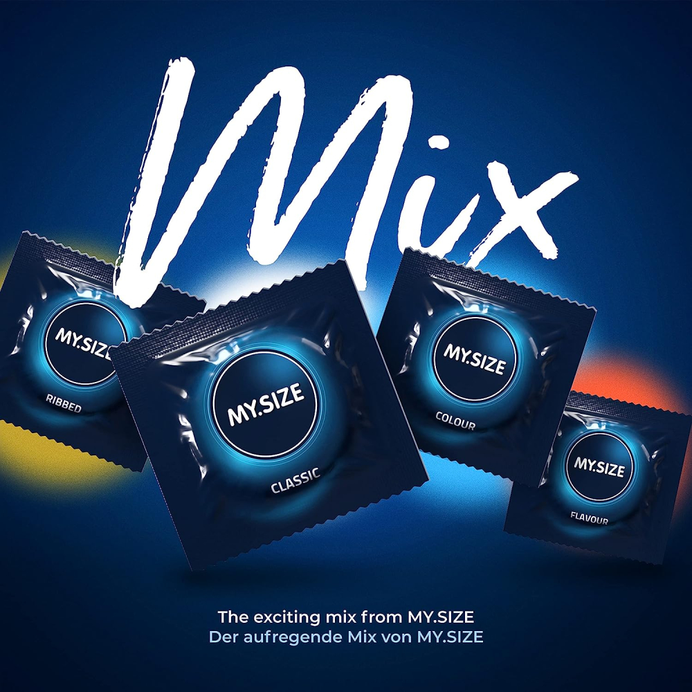 Продукт з низьким вмістом алергенів через використання чистого VYTEX: латекс, що містить на 90% менше латексних білків, ніж звичайний латекс. Істотно зменшення запаху презерватива завдяки використанню високочистого латексу VYTEXLatex. Презервативи MY з товщиною стінки всього 0,08 мм SIZE MIX набагато тонше і здається надчутливою на дотик.