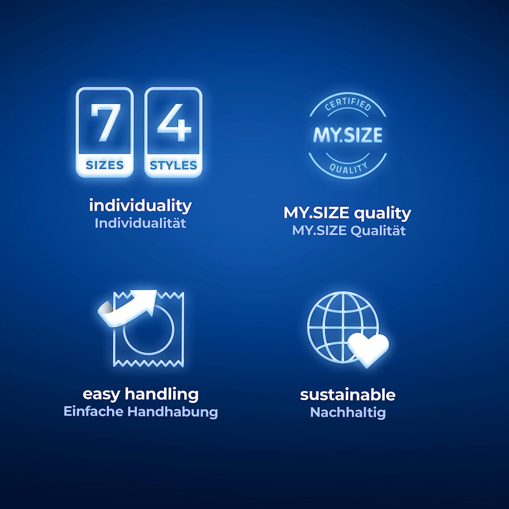 Продукт з низьким вмістом алергенів через використання чистого VYTEX: латекс, що містить на 90% менше латексних білків, ніж звичайний латекс. Істотно зменшення запаху презерватива завдяки використанню високочистого латексу VYTEXLatex. Презервативи MY з товщиною стінки всього 0,08 мм SIZE MIX набагато тонше і здається надчутливою на дотик.