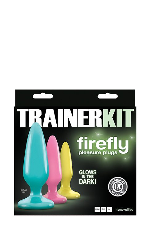 Ваше навчання розпочинається зараз! Тренажерний комплект Firefly з трьома гнучкими анальними пробками забезпечує приємний спосіб розширити свої сексуальні можливості. Виготовлені з TPE без запаху, свічки світяться у темряві, мають міцні присоски та можуть використовуватися з усіма мастильними матеріалами.