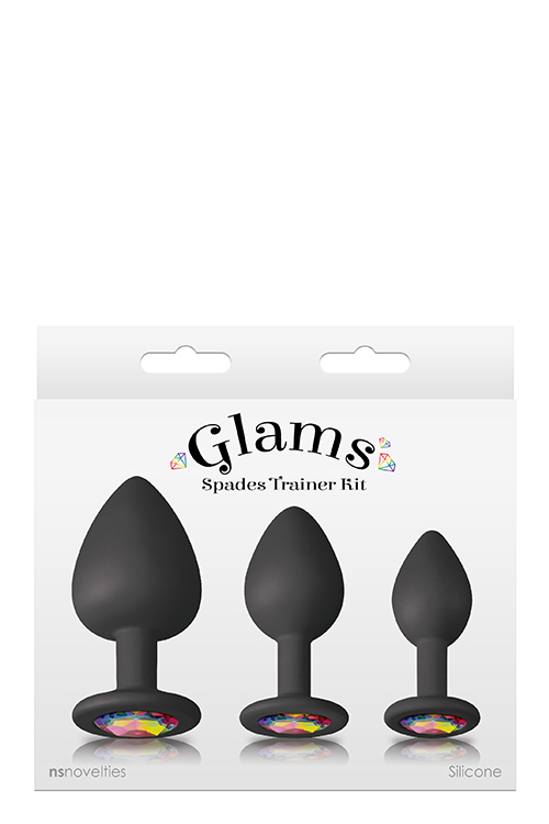 Набір анальних силіконових пробок різного розміру чорного кольору з дорогоцінним камінням NS Novelties Glams spades