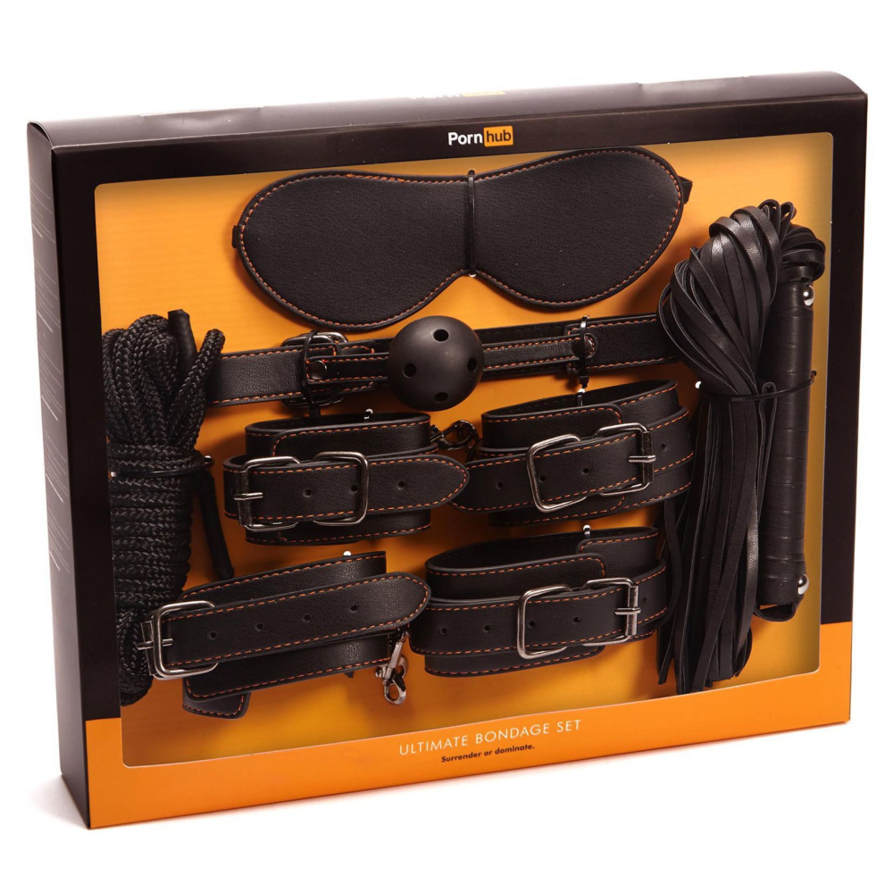 Візьміть контроль в свої руки. Домінуйте або підкоряйтеся, досліджуючи найпотаємніші закутки своїх сексуальних фантазій. Це просто-достатньо купити набір Pornhub Ultimate Bondage Set і не стримувати свої бажання. Дві пари наручників (для ніг і рук), кляп, маска, мотузка і флоггер дозволять вам провести повноцінну БДСМ-сесію в тій ролі, про яку давно мріяли.